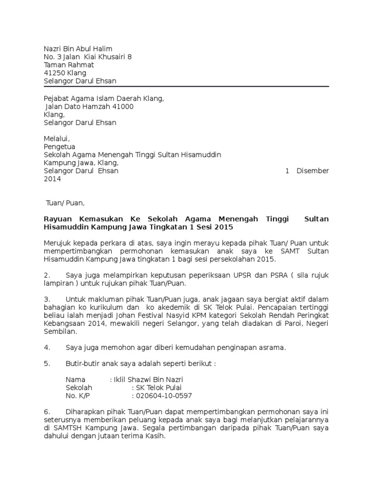 Contoh Surat Rayuan Mrsm.